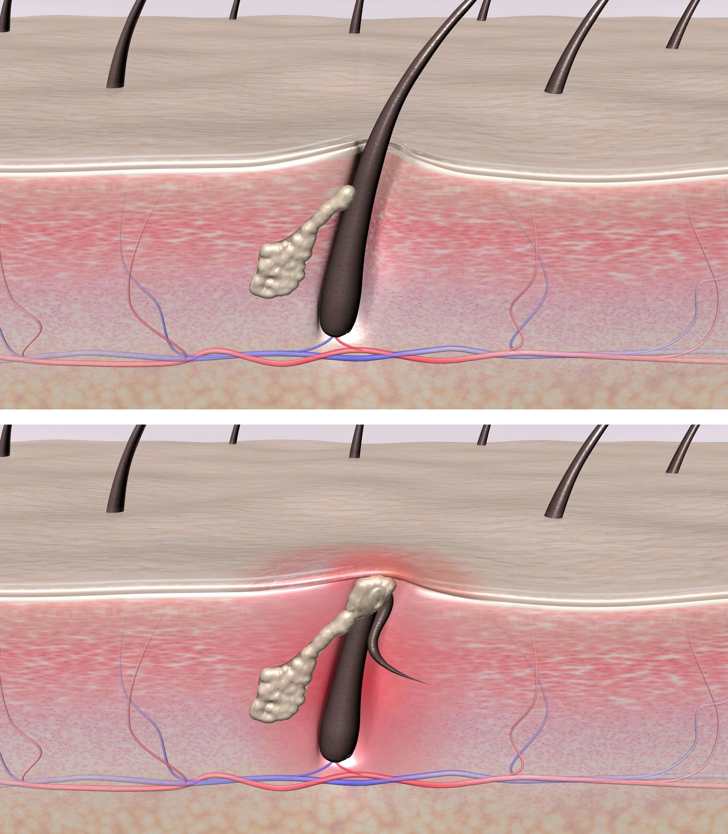 Dead Skin Cell Buildup: When dead skin cells accumulate on the surface, they can block hair follicle openings. This forces new hair growth to take the path of least resistance—sideways under the skin rather than up through the clogged opening.